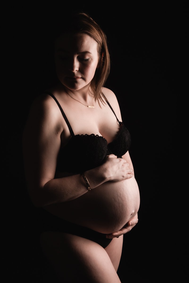 The backdrop and setting weren’t the only things that changed from the first session to the next… My client was also pregnant for our second shoot! I was SO excited for this photo shoot because I knew that this lighting and photo style would be incredible for a maternity session… And I have to say, I was right on this one. Look how gorgeous these shots came out!