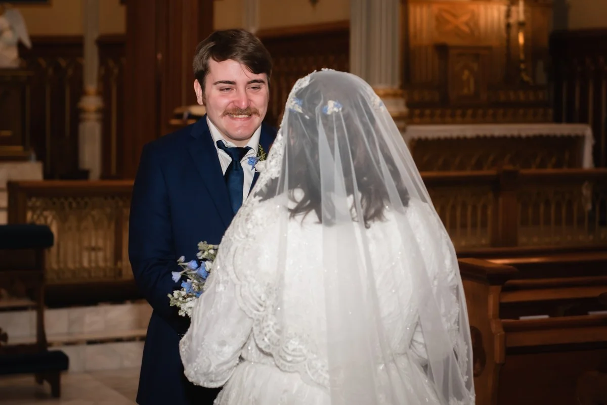 Next, it was time to meet Tyler so he could get his “first look” at Sienna before walking down the aisle! Tyler was getting ready at home while Sienna got ready at the church, so he arrived at the church a bit later than she did... just in time for their first look!