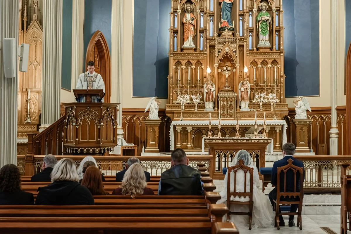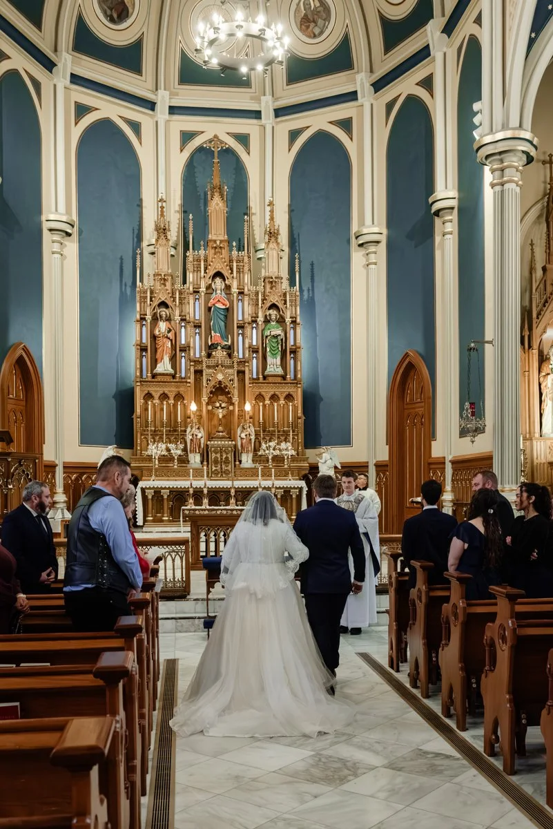 Before we knew it, it was time for their wedding ceremony and mass to begin. It started with a procession that included the church’s priest and servers, Sienna’s cousin along with Tyler’s best friend, and finally... Sienna and Tyler!